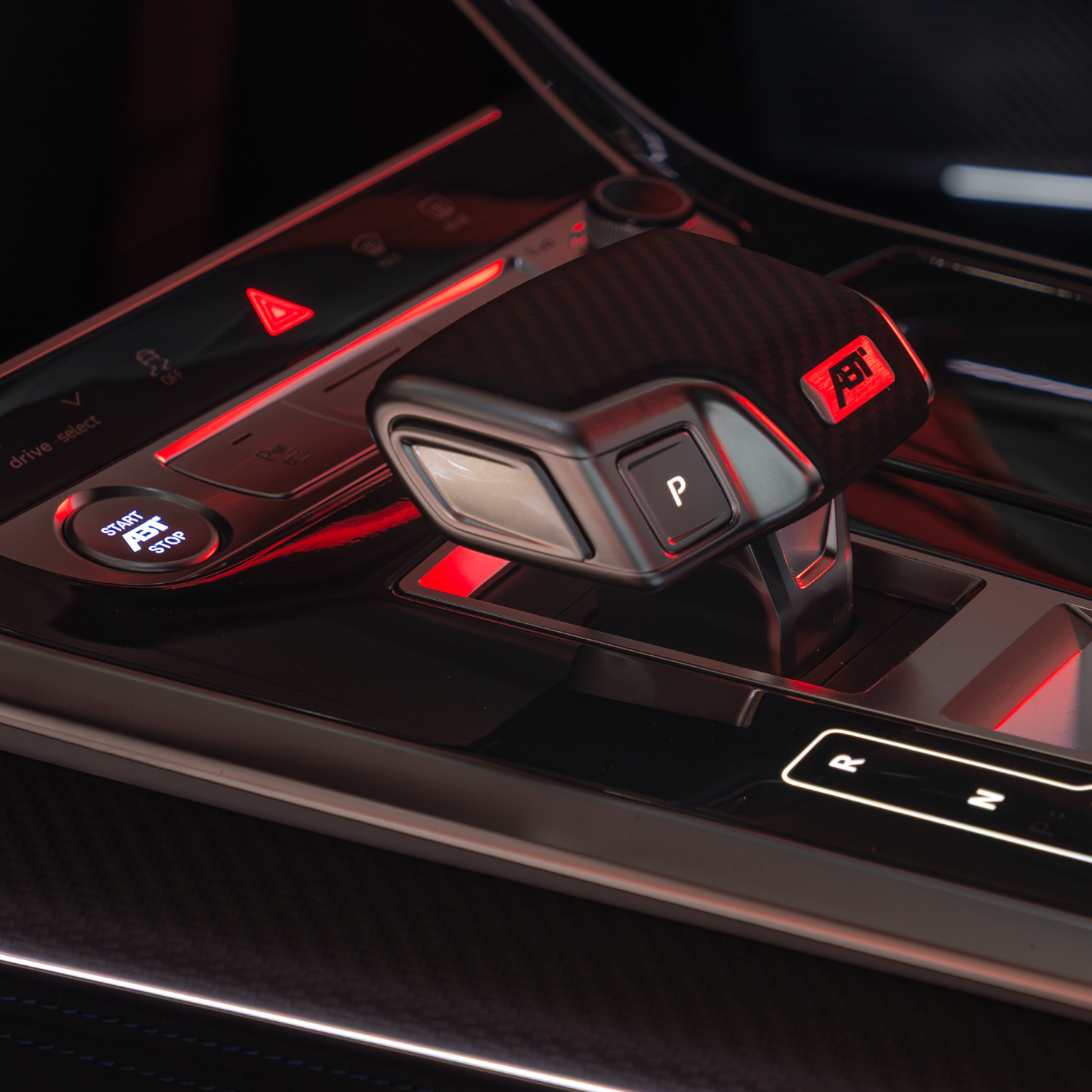 Es sind oft die kleinen Dinge, die den Unterschied machen. Details wie die Sitzveredelung mit ABT Logo in der Kopfstütze und RSQ8-S Logo, die ABT Lenkradplakette und die Schaltknaufkappe aus mattem Sichtcarbon schaffen eine Atmosphäre, die man spürt, sobald man Platz nimmt.