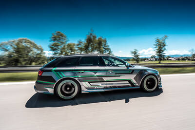 Beim ABT Audi RS6-E beeindrucken bereits die Eckdaten des Verbrennungsmotors, der alleine auf 730 PS (537 kW) kommt. Die Differenz zum 560 PS (412 kW) starken Serientriebwerk erklären das selbst entwickelte Steuergerät ABT Engine Control (AEC) und eine modifizierte Abgasanlage. Als ABT Power R ist das Performance-Paket bereits im Handel verfügbar. Der Prototyp hat jedoch mehr zu bieten. Möchte der Fahrer die Beschleunigung ausreizen, lässt sich oberhalb von 100 km/h auch die E-Power nutzen: Nun werden für kurze Zeit 288 PS ( 213 kW) und 317 Nm zusätzliches Drehmoment frei. Insgesamt ergibt dies eine Systemleistung von 1.018 PS und 1.291 Nm. Da die Zusatzpower nur bei Bedarf zugeschaltet wird, reicht eine kompakte Batterie mit einer Kapazität von 13,6 kWh aus.